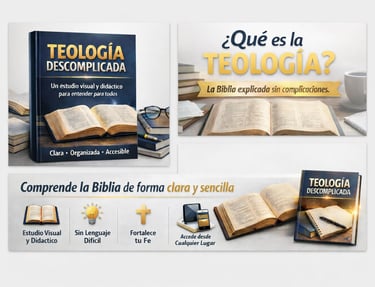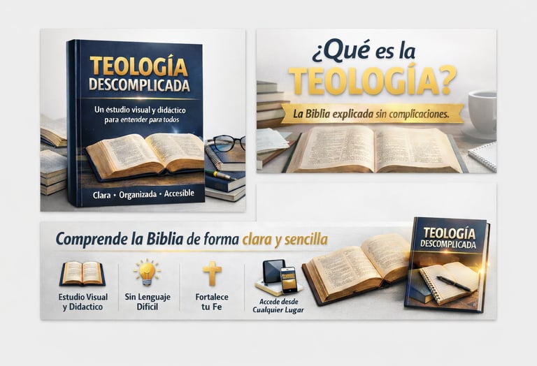Teología Descomplicada es una guía visual, clara y didáctica que te lleva paso a paso a través del conocimiento bíblico, ayudándote a comprender las Escrituras con orden, propósito y profundidad.